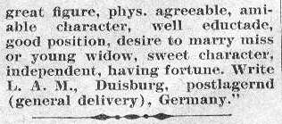 independent, having fortune. Write L.A.M., Duisburg, postlagernd