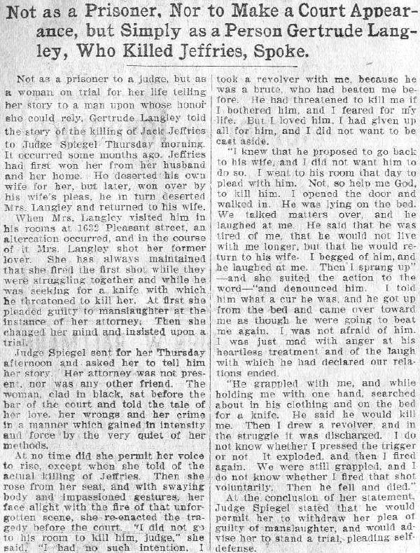 Gertrude Langley, Who Killed Jeffries, Spoke.