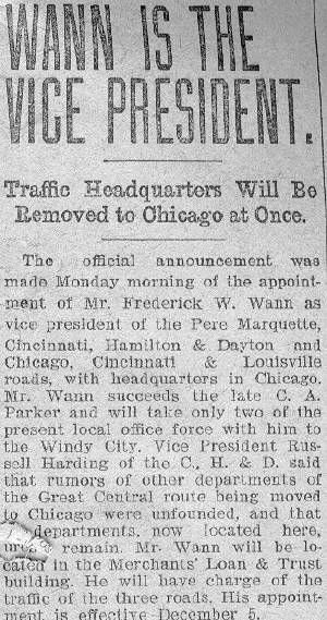 Frederick W. Wann as vice president of the Pere Marquette, Cincinnati,