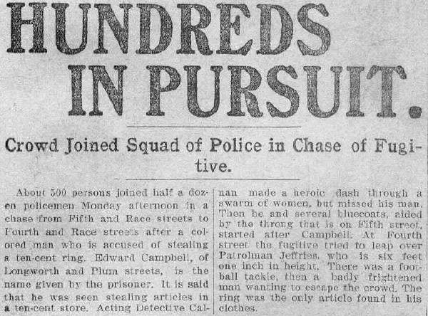 Crowd Joined Squad of Police in Chase of Fugitive.