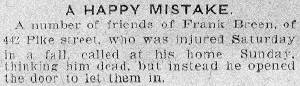 friends of Frank Breen, of 442 Pike street, who was injured Saturday in
