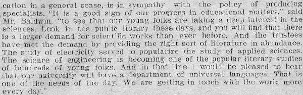 sign of our progress in educational matters, “said Mr. Baldwin, “to see