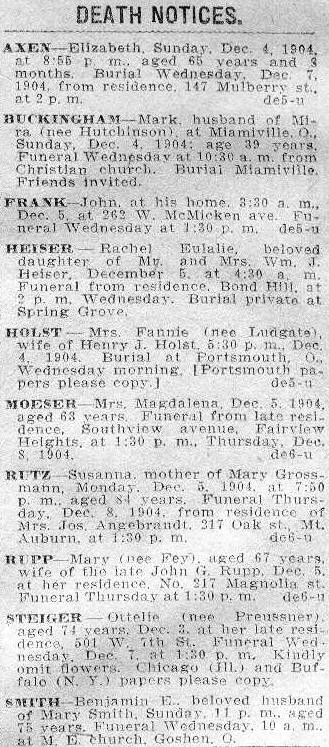 4, 1904. Burial at Portsmouth, O., Wednesday morning. [Portsmouth