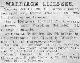 Mamie Geraci, 18, 213 West Front street, and Frank Morano, 23, 213 West