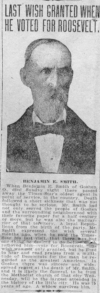 Goshen O., died Sunday night there passed away the Times-Star’s oldest
