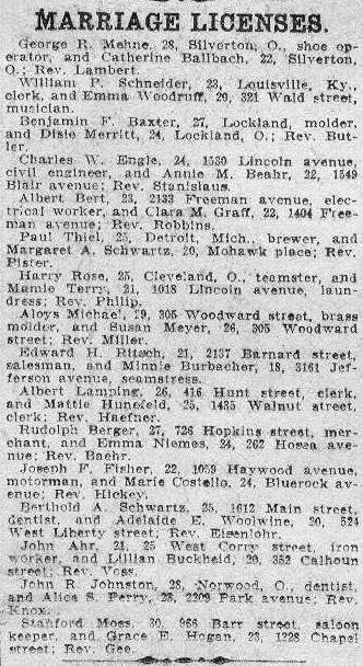Ballbach, 22, Silverton, O.; Rev. Lambert.