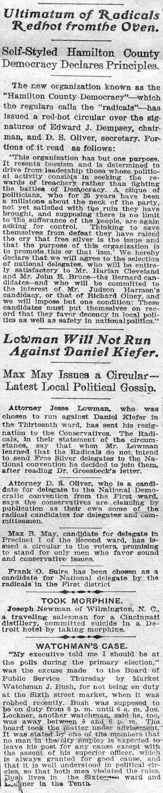 as the "Hamilton County Democracy" – which the regulars calls the
