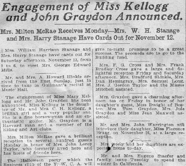 Mary Kellogg and Mr. John Graydon has been announced. Miss