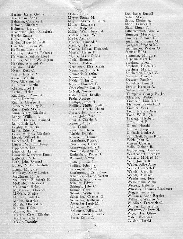 | Henderson, Jane Elizabeth | Miller, Wm. Hurxthal | Silberschmidt, Elsa L. |