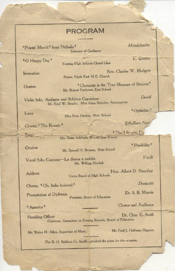 Alma Kuechler. Edwin Kuenneth. Lillian Kummer. Nora Keating. John McCormack. Chas. Miller. Ray. H. Meyer. Stanley E. Meyer. Charles W. Meyer. Mi??? Iona Miller. Alfred H. Latscha. Clara Lauman. Minnie Lentz. Reuben V. Nickum. Robert J. Nolan. Stella O??baugh. Sarah S. Parks. G. E. H. Pa?mueller. Marie ?. Pellen. Roy George Percival. ??? ??? Esther L. Roff. Frank W. Rampelman. Augusta Rudloff. Joseph M. Ritter. P. H. Ruchstuhl. |